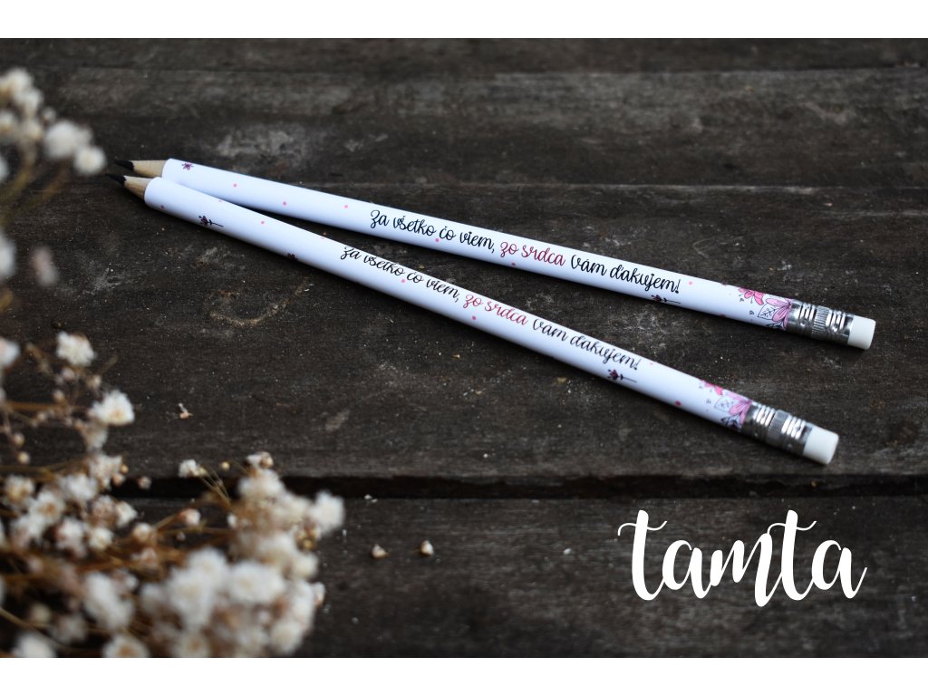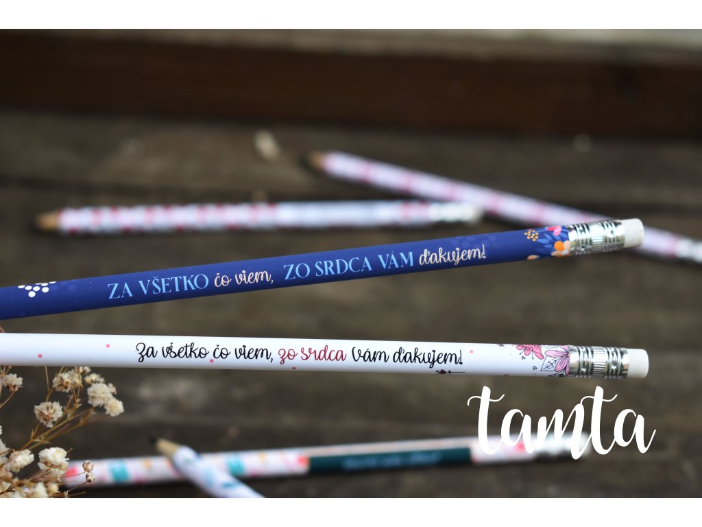 Drevená ceruzka s gumou s textom "Za všetko čo viem, zo srdca Vám ďakujem" je malý milý darček aj pre toho vášho pána učiteľa či pani učiteľku