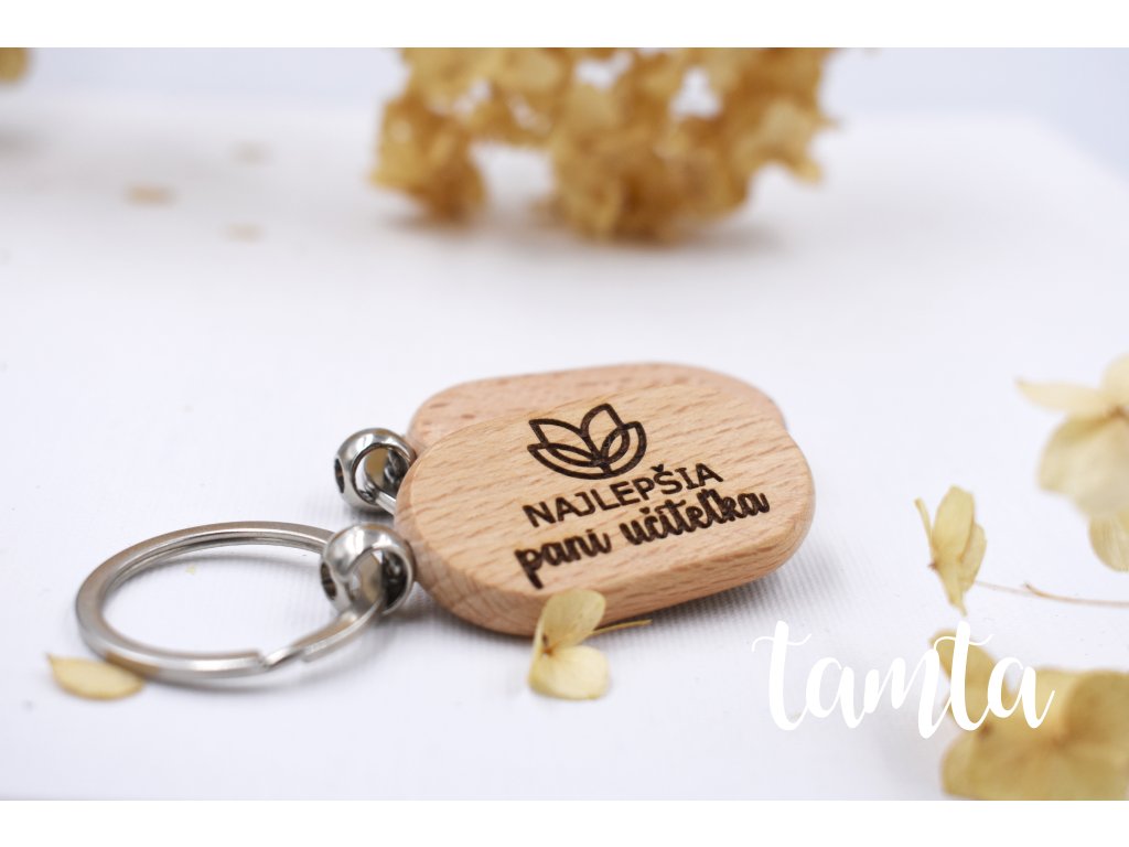 Malý darček, ktorý povie veľké „ďakujem“. Táto drevená kľúčenka s gravírovaným nápisom „Najlepšia pani učiteľka“ je krásna pozornosť na koniec školského roka, Deň učiteľov alebo ako poďakovanie od žiakov či rodičov. Je ľahká, príjemná do ruky a vďaka kovovému krúžku bude vždy po ruke – na kľúčoch, na kabelke alebo na ruksaku.