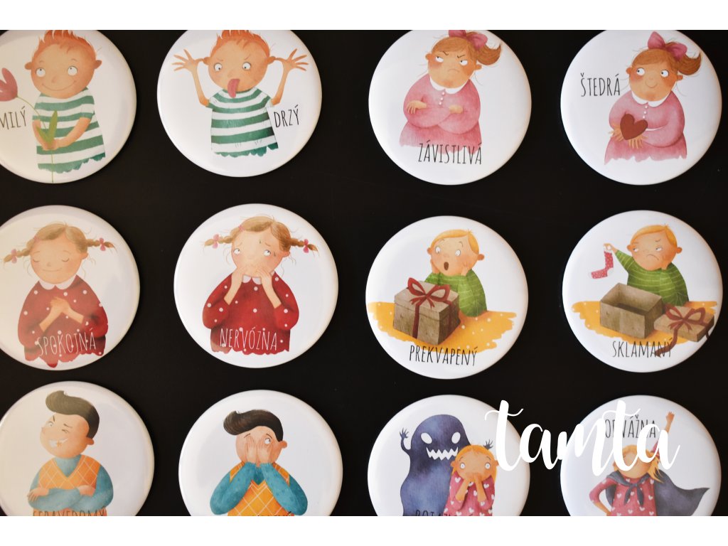 Na magnetkách je zachytených 25 EMÓCIÍ, z ktorých 20 sú si vzájomným protikladom ako napríklad: šťastná - smutná, hladný - sýty, spokojná - nervózna a 5 ďalších ukazujú na emócie s konkrétnou situáciou ako napríklad Paľko skúma pod lupov chrobáka, pretože je zvedavý.