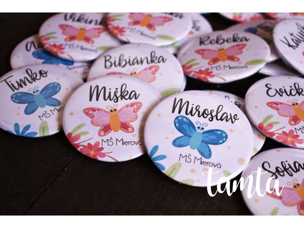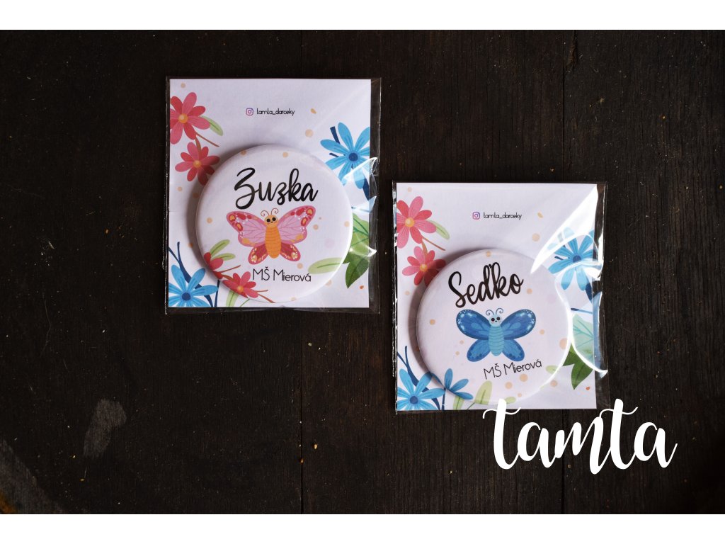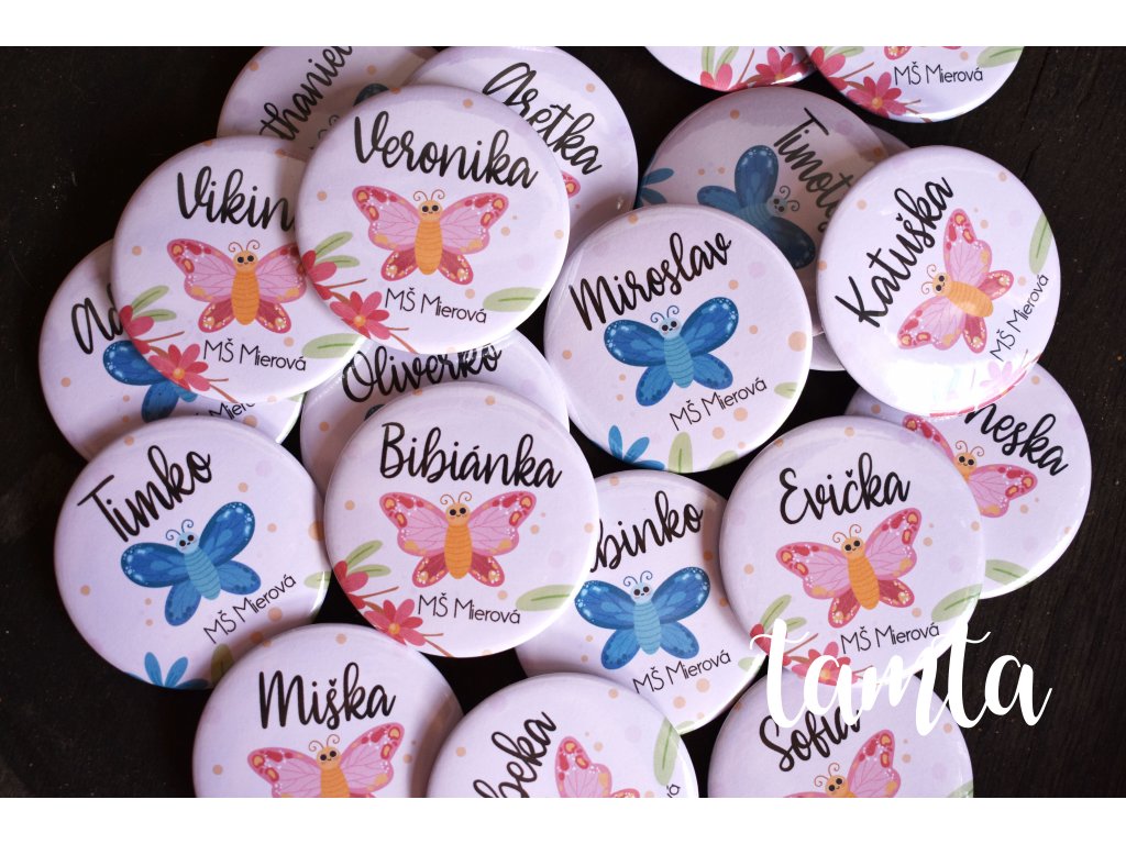 Odznaky s motívom MOTÝĽOV sú ideálny darček pre deti ako pamiatka na škôlku od kamaráta či pani učiteľky.