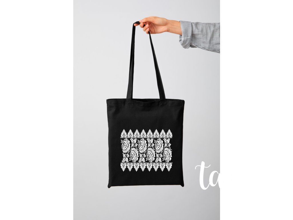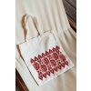 Bavlnená taška s ľudovým motívom z obce Sebechleby, ktorá sa nachádza v regióne Hont na južnom Slovensku.