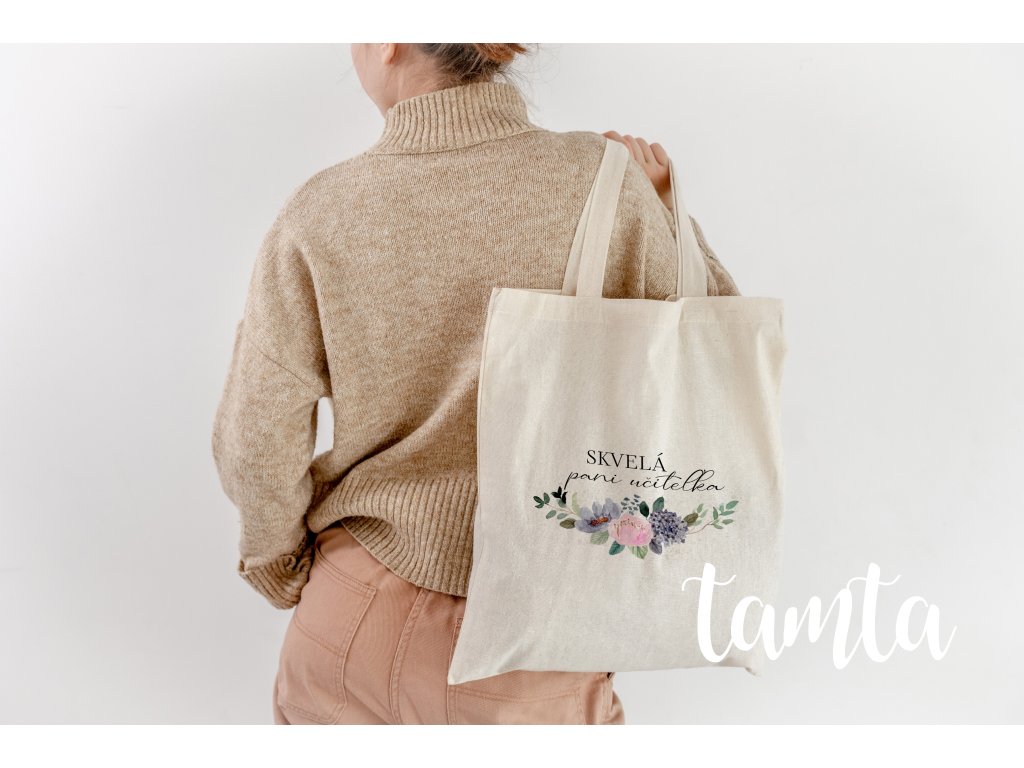 Plátená taška „Skvelá pani učiteľka“ – kvetinový motív